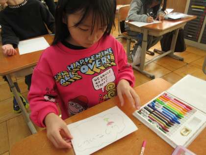 1年生は、来週、4月から1年生になる年長さんとの交流学習があります。