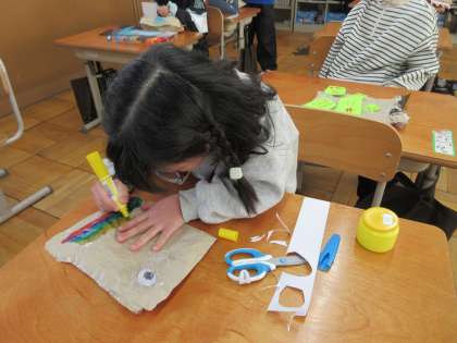 へび、ドラゴン、鳥・・・など、作った作品を友だちとぱくぱくさせて楽しんでいました。