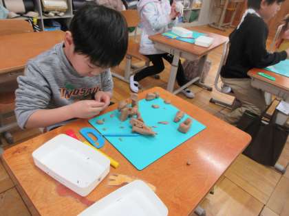 1年生は、今度の作品展で、粘土の作品を展示します。