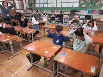 色カードを指さしたりして言い方に慣れ親しんでいます。