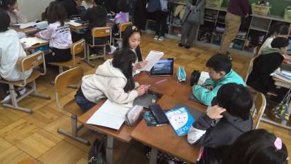 お気に入りの場所について、タブレットを活用し、友だちに発表しました。