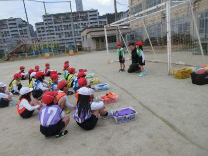 1年生はボールあそびの学習を楽しんでいます。