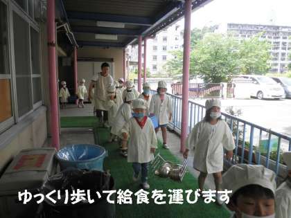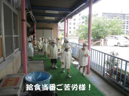 5月の連休後は,1年生もすっかり自分たちで給食を運べるようになりました。4月当初は,6年生の子どもたちが手伝ってくれていましたが,今では,自分たちで運び,自分たちで配膳して,時間内に「いただきます〜ごちそうさま」ができるようになりました。