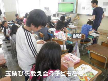 うまくできるときとできないときがあります。まだまだ練習不足です。子どもたちは,お互いに教え合って「玉結び」に挑戦していました。