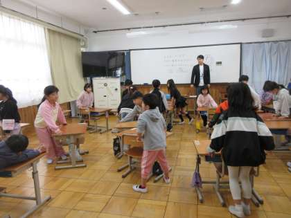 先生に次の席を聞いて、素早く譲り合って席替え完了です!