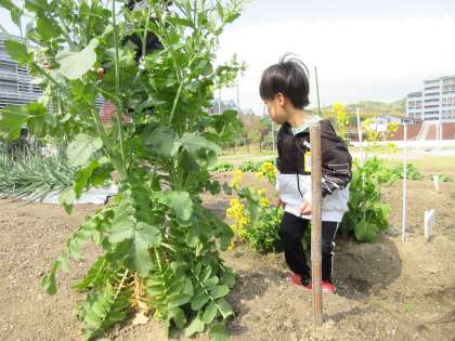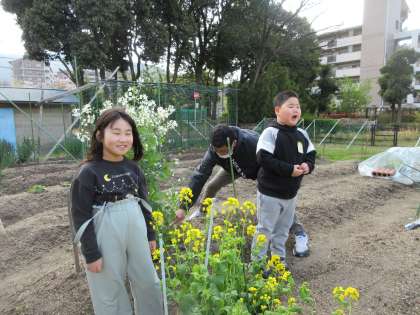 3くみのみんなは、朝一番に運動場に出て、走ったり植物の観察をしたりしています。