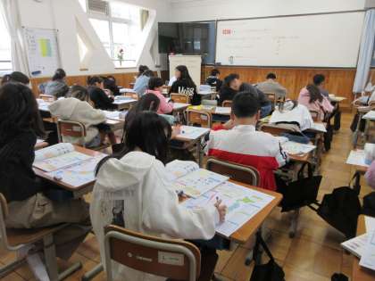 社会の時間に、都道府県のワークシートに取り組んでいました。