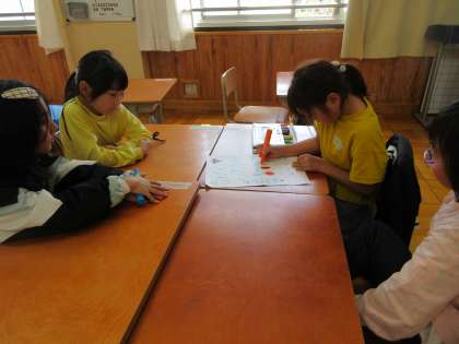新しい係のメンバーと、これからの活動について話し合って、ポスターを書きました。