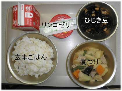 「玄米ごはん」「煮つけ」「ひじき豆」「リンゴゼリー」