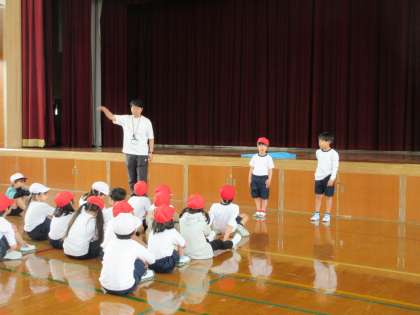 日直さんが前に出て、「これから体育の学習を始めます!」と元気にあいさつです!
