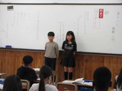 国語では「春のうた」を覚えて、2人ずつみんなの前に出て、しっかりと声を出して発表しました。