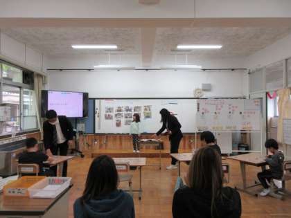先生や3くみの友だちのことをインタビューし、それをクイズにして出し合いました。