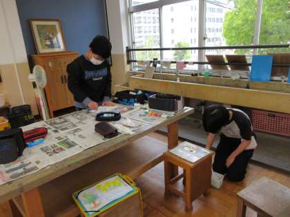 6年生は、運動場でスケッチをしたり色付けをしたりして、図工室に戻って仕上げていました。
