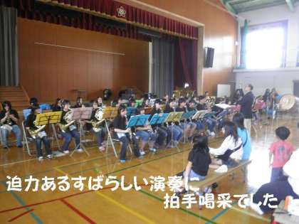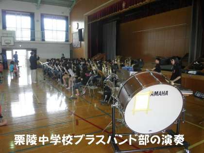 お祭りのフィナーレを飾るのは,地元栗陵中学校のブラスバンドの演奏です。
