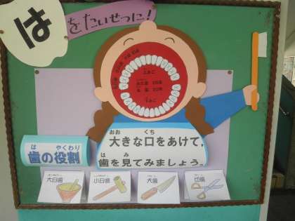 一生使う大切な歯です。朝と寝る前に歯みがきの習慣をつけて,虫歯にならないように予防しましょう。