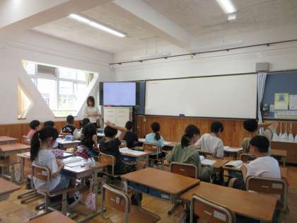 クラスを半分ずつ2つの教室分けて、小人数で学習を進めています。