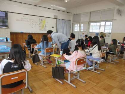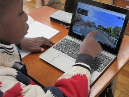 学校や家の周りがどのようになっているか、タブレットのマップ機能を使いながら確かめていました。