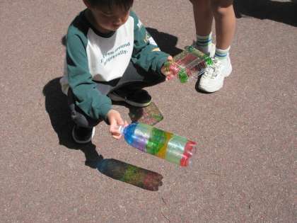 地面に写ったようすを見て、喜んでいました。