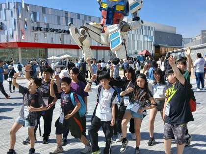 最後は、ガンダムの前に集合!