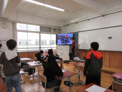 6年生は、修学旅行の写真や動画を見ながら、活動をふり返っていました。