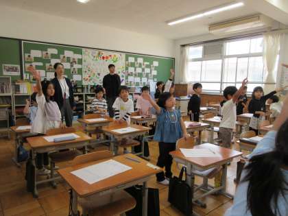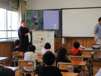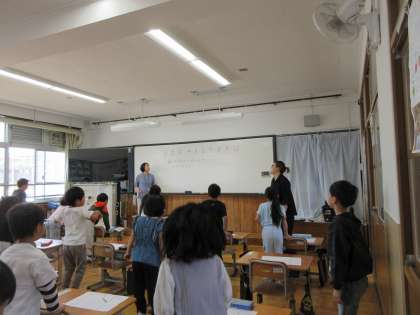 カレン先生に自己紹介をしていただいたり、英語の歌を一緒に歌ったりしました。