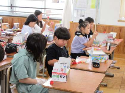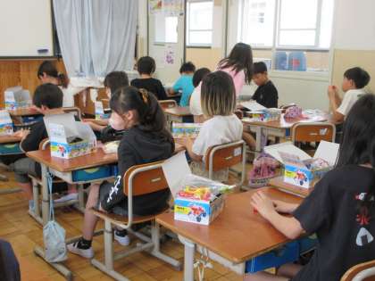 4年生は、電気のはたらきについての学習で使う実験セットの内容のチェックをしていました。