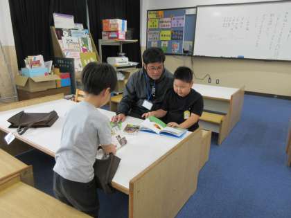 担任の先生と一緒に和やかな読書タイムです!