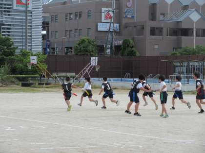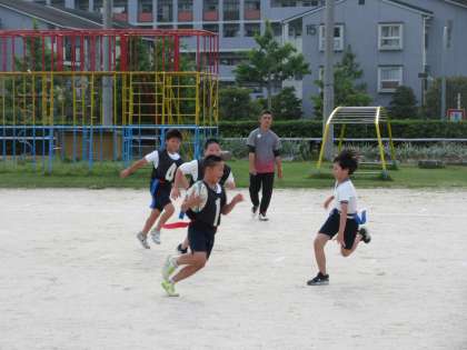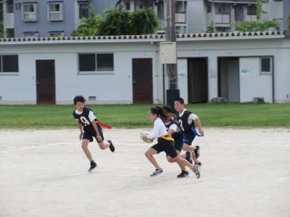 屋外では「タグラグビー」の練習試合をしていました。