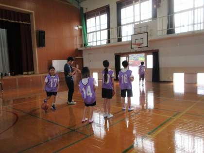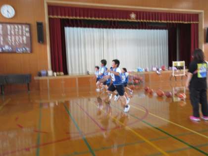 体育館では、バスケットボールの基礎練習をがんばりました。