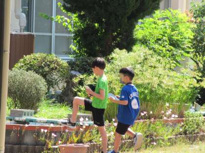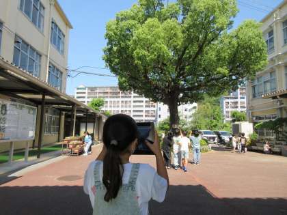 2年生は図工科の「草花とおしゃべり」の学習で、草花の写真を撮り、タブレットで絵や言葉をかき足して、作品作りをしました。