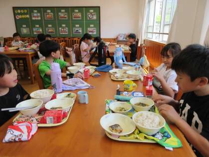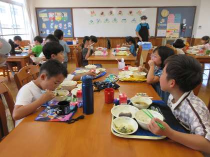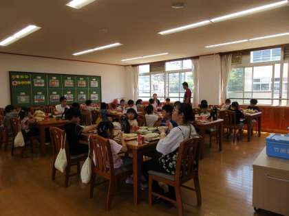 食に関する指導の後は、恒例のランチルームでの給食タイムです。