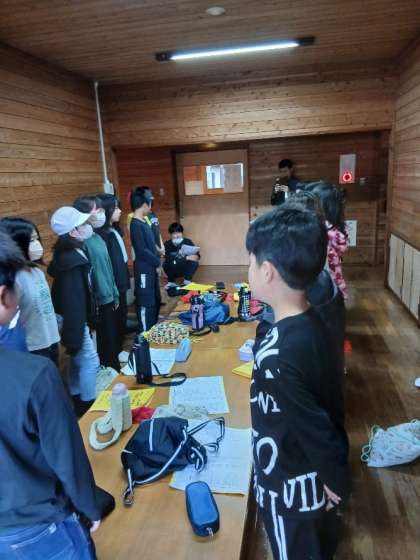 今日は、フライングディスクゴルフ、アスレチック、スコアオリエンテーリング、キャンプファイヤーを予定しています。