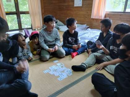 朝の集いの後は少し時間があったので、カードゲームをして過ごしている子どももいました。