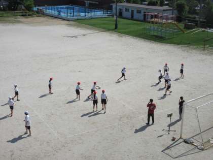 暑さ対策をしつつ、ドッジボールを楽しんでいました。