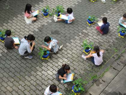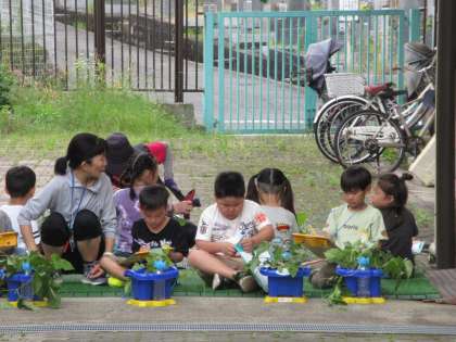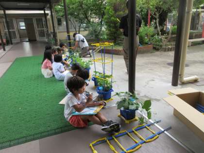 どんどん成長し、つるも伸びてきたので、支柱を立てました。