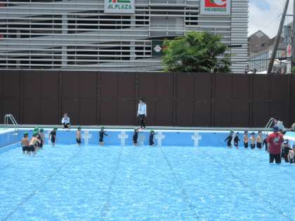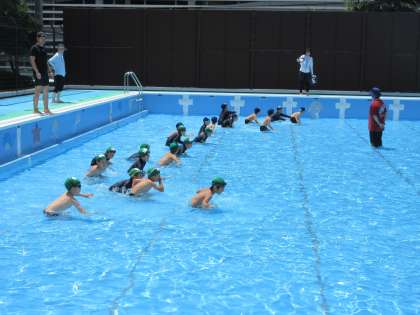 安全のためのバディを組み、プールでの学習のルールをしっかりと確かめながら安全第一で学習に取り組んでいきます。