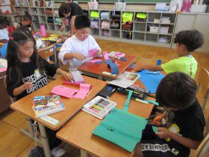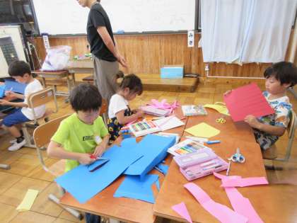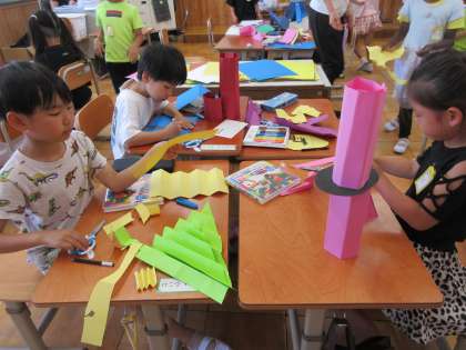 紙を立てた形から、切ったり書いたりして、たくさん作っていました。
