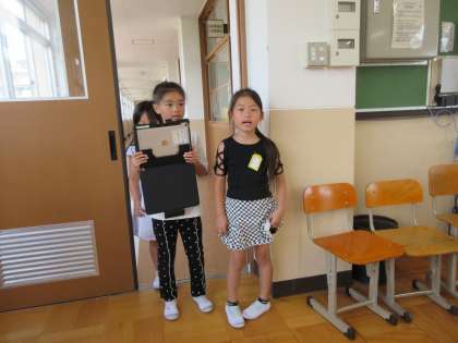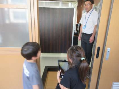 今度は、自分たちでいろいろな部屋へ行き、教職員にインタビューをして、その様子を動画におさめました。