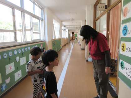 5月に2年生とのなかよしペアで学校探検をした1年生。
