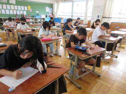 掃除の後の学びタイムに漢字テストをがんばりました。