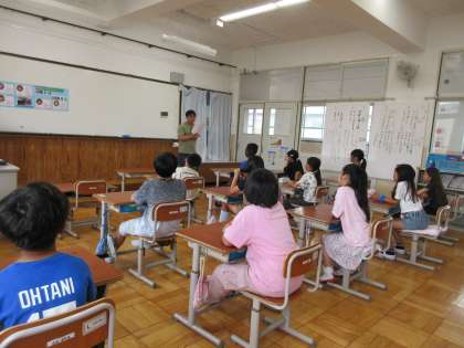5校時が始まる前に、地域での安全な過ごし方や、遊び方についてのお話を聞きました。