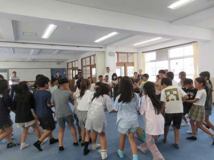 一緒に宿泊学習に行く、池田小学校の4年生の皆さんが、醍醐西小学校に来てくれました。