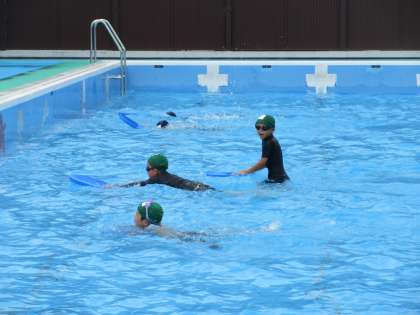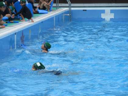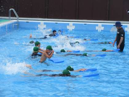 泳げるようになるために、ビート板を使ってのバタ足をがんばりました。