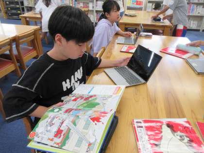 図書館で調べ学習をしました。