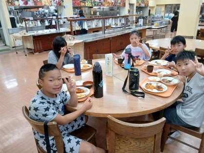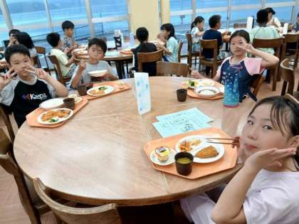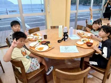 海での活動もあり、子どもたちはおなかペコペコの様子。「いただきます!」のあいさつのあと、みんなもりもり食べています。