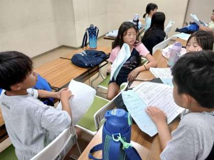 次に、班ごとに振り返りを行いました。班で決めた「めあて」について、どれだけ意識して行動できたかを話し合いました。