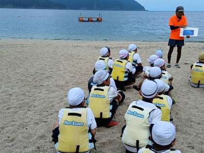 水泳とスノーケリングの2グループに分かれて海の活動を行います。