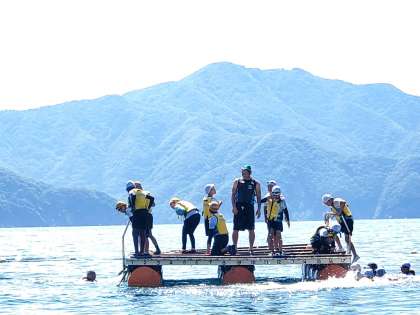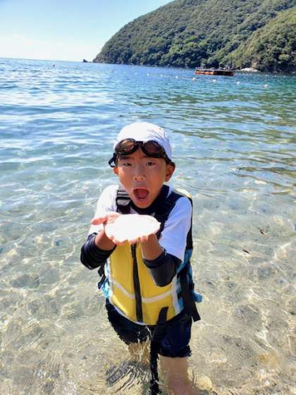 スノーケリング。魚がたくさんいて子供たちは大興奮です。