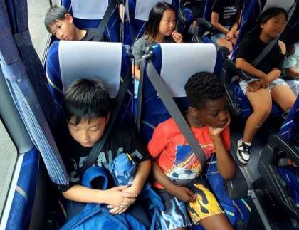 楽しかった宿泊学習を終え、バスの中では静かな時間が流れています。