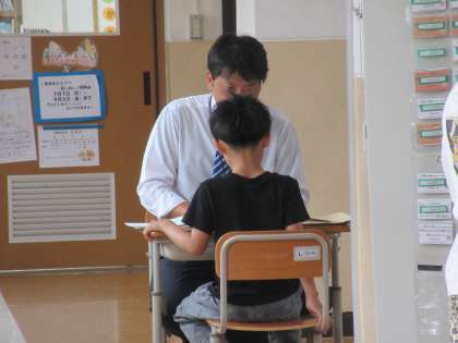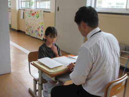 お話をしながら、通知票をもらっています!